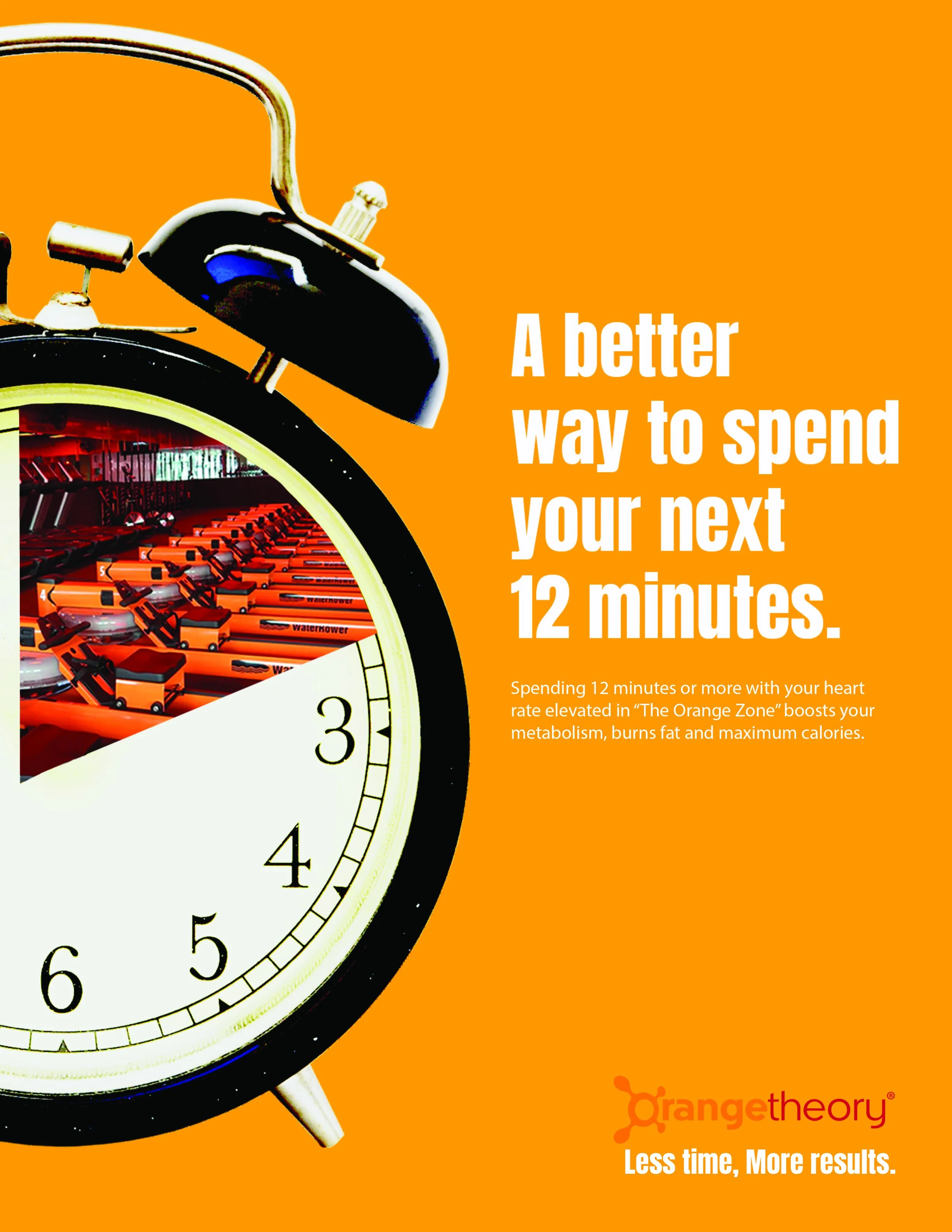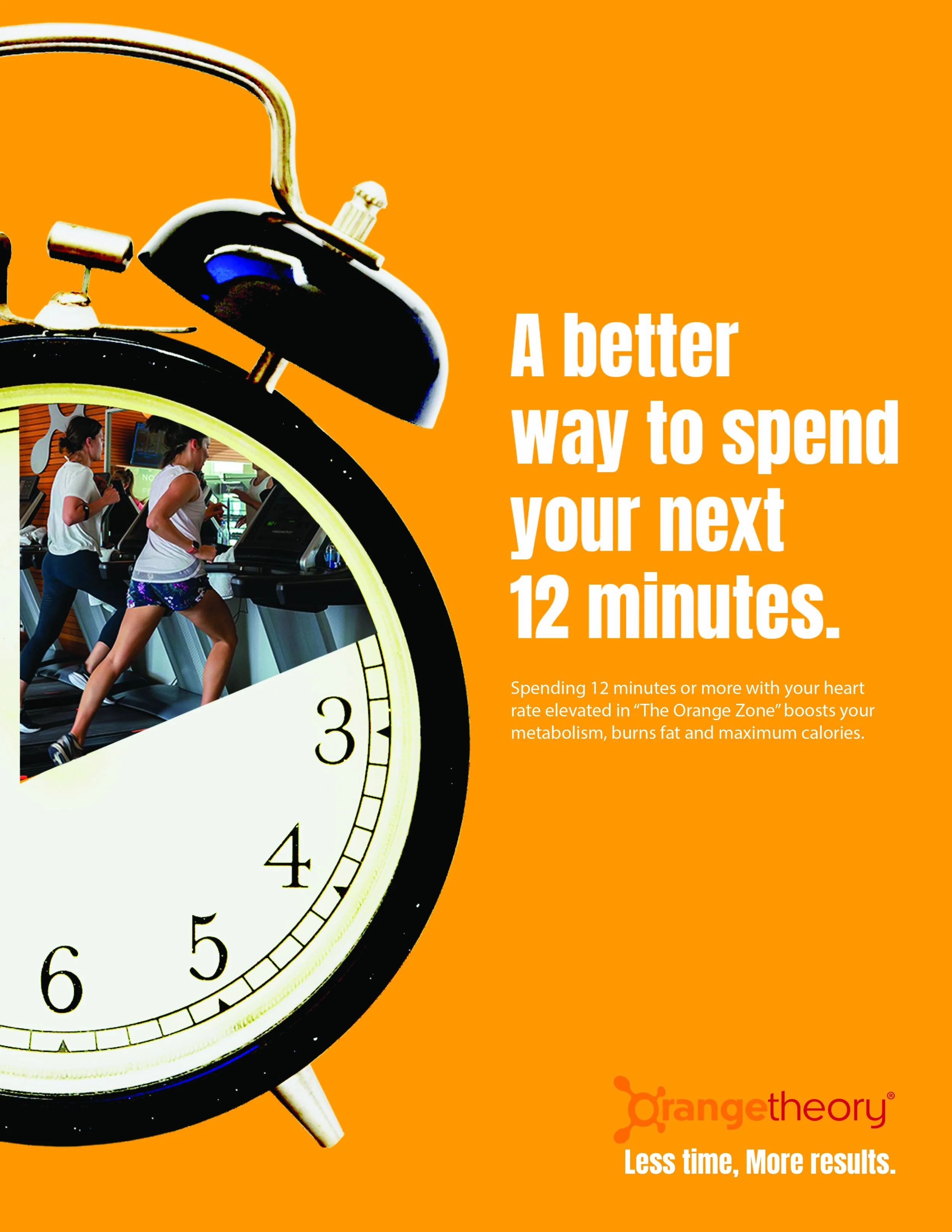 Orange Theory 12 minute workouts push your heart rate to “The Orange Zone” so you can burn more calories in less time.